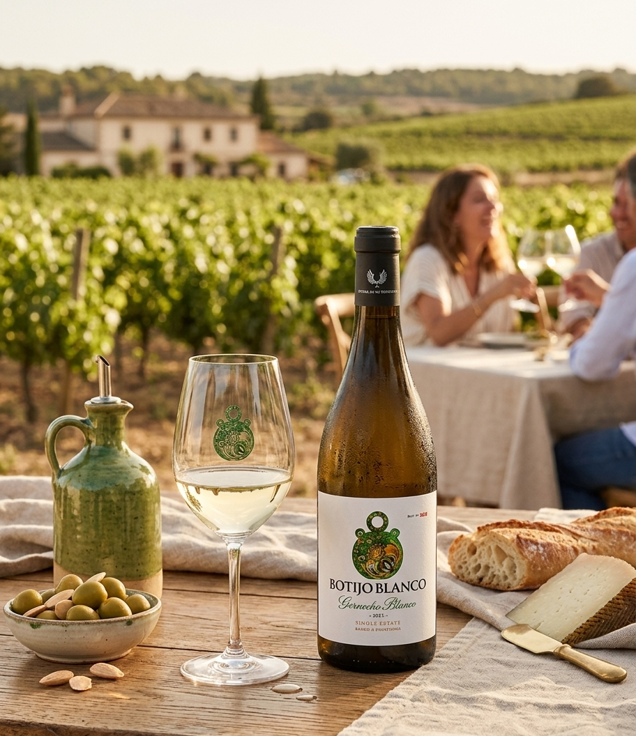 A vibrant and refreshing white wine that captures the essence of high-altitude vineyards in Valdejalón. Botijo Blanco offers bright citrus aromas layered with notes of green apple, white flowers, and a subtle mineral backbone. On the palate, it is crisp and lively, with balanced acidity and a clean, elegant finish. Perfect for warm evenings or pairing with seafood, salads, and light appetizers, this wine delivers both charm and drinkability in every glass.