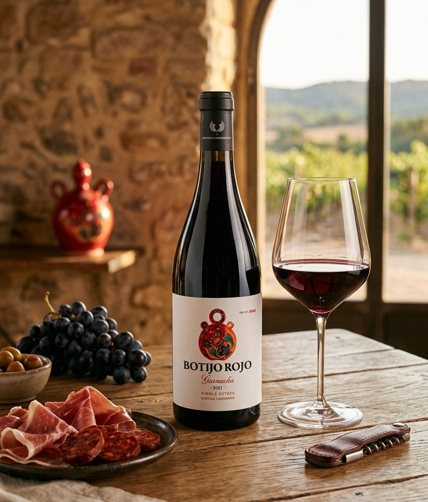 Juicy, approachable, and full of personality, Botijo Rojo is a Garnacha that delivers immediate pleasure. Bursting with ripe red fruit flavors like cherry and raspberry, it is complemented by hints of spice and earthy undertones. Light-bodied with soft tannins and bright acidity, it is incredibly easy to drink while still offering depth and character. Ideal for casual gatherings, it pairs beautifully with charcuterie, pizza, and everyday